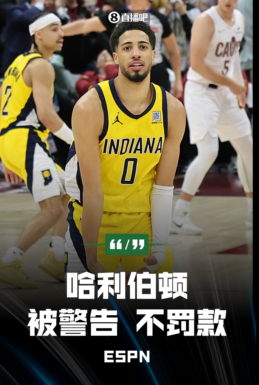 金年会体育此外,哈利伯顿在首轮对阵骑士时曾跳出“大蛋舞”庆祝,这个动作一般都会罚款,但联盟对他网开一面,只是进行了警告处分。
