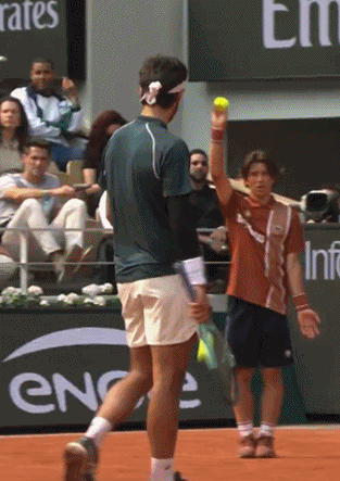 此前有球员类似举动被取消资格,在2020年德约在比赛中用球拍挥球,不小心击中了人。