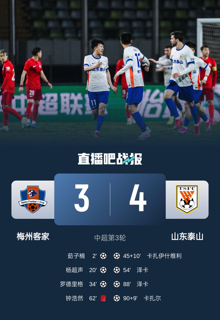 jinnianhui金年会3月30日讯 中超第三轮比赛,泰山队客场4-3逆转击败梅州客家。对于本场比赛的过程,《足球报》记者陈永发文进行了点评。